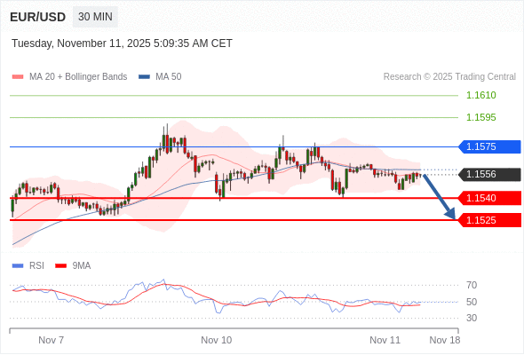 在 1.1575 之下,看跌,目标价位为 1.1540 ,然后为 1.1525 。