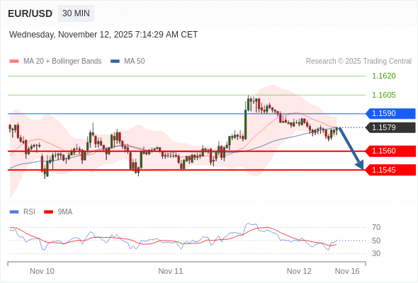 在 1.1590 之下,看跌,目标价位为 1.1560 ,然后为 1.1545 。