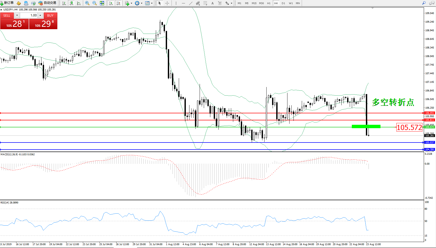股市的走弱令市场避险情绪显著升温,美元兑日元周五大跌仅1%,一度刷新仅两周低点至105.26,收报105.39,周线下跌0.93%,日内贸易风险再度上升,此后,市场瞩目的焦点将是全球央行年会上各国官员的表态,而此次会议也早已被视作是全球货币政策集体转向全面宽松的誓师大会,但在这样的浪潮中,手头已经没有更多可用政策工具的日本央行很可能会处于被动低位,这意味着日元之后仍面临被迫升值的压力,另外,中国宣布对美国的关税政策采取反制措施,对近750亿美元美国商品加征关税。特朗普连发12条推特。要求美国企业尽快停止在中国进行采购。因此,美元兑日元短线上破107关键阻力位仍是困难重重。
