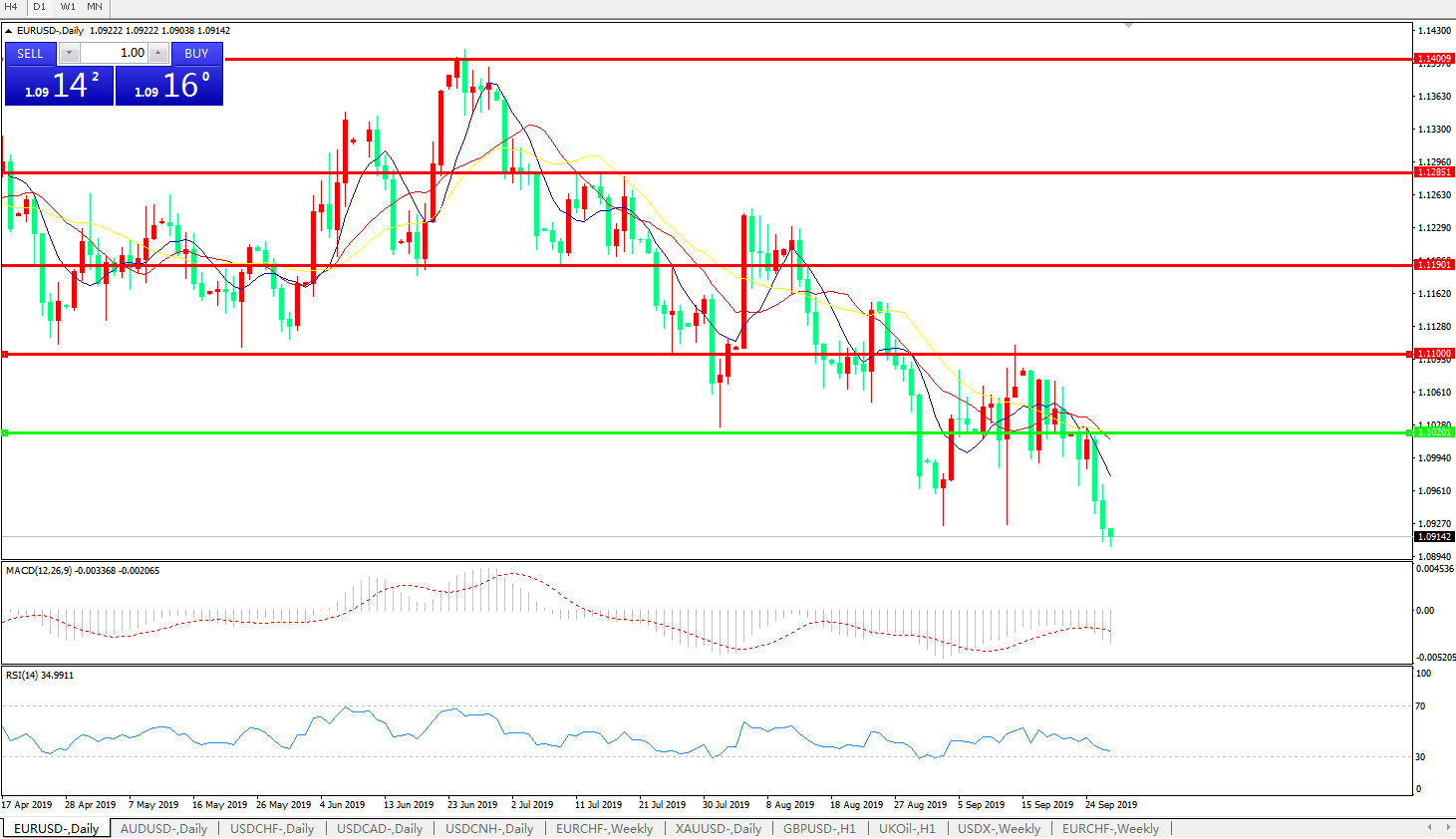 欧元兑美元在周四进入欧洲时段后重新走低,并最终击穿了前期1.0926的双重底部支撑,创出自2017年5月以来的28个月新低,原因在于投资者对欧元区经济前景继续看衰; 此前,欧洲央行德国籍鹰派执委劳滕施莱格意外宣布辞职,这给此后新行长拉加德上任后欧银进一步强化宽松更加铺平了道路,此消息直接推动欧元汇价进一步跳跌。而自本周以来,欧元区最大经济体德国经济失速,很可能在年内即陷入技术性衰退的前景,也已经成了欧元多头的一块心病; 日内,当年主导创建欧元区的功臣之一——法国前总统希拉克去世,消息也对欧元区投资者情绪产生了一些牵连,而眼下,欧元汇价下方所面临的的重要支撑,恰恰就已经是2017年4月法国大选初步结果揭晓时的向上跳空缺口,一旦汇价回补此缺口,将可能在年内下行至1.05一线。