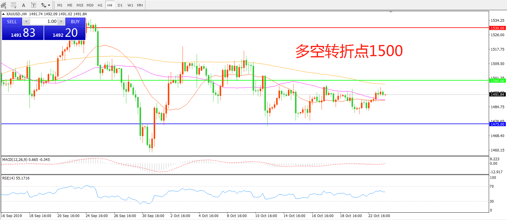 周三(10月23日)脱欧乱局再次为金价提供了支撑,英国议会否决了约翰逊“脱欧”协议得立法时间表,这意味着英国月底“脱欧”的计划落空,而提前大选或成解决危机的唯一途径。现货黄金窄幅震荡后收报1492.19美元/盎司,美联储将在北京时间下周四凌晨2点公布最新的利率决议,目前美联储已经进入决议之前的噤声期,市场仍在对美联储10月降息的预期进行定价,交投较为谨慎。