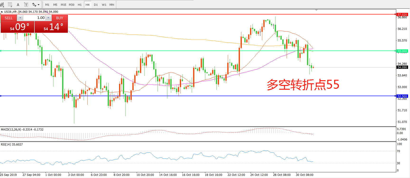 交易策略:在55.00之下看跌,目标52.50 50.00