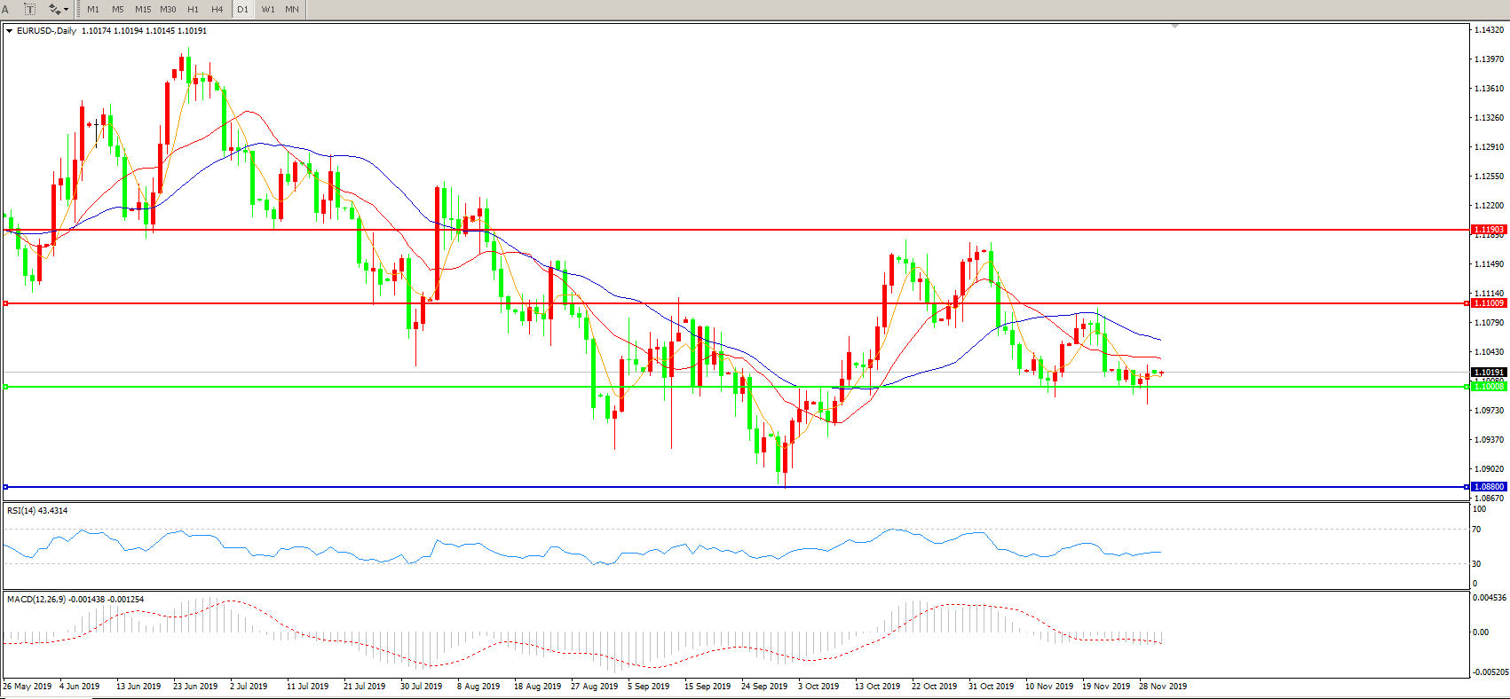 交易策略:1.1000上方看涨,目标1.1100、1.1190