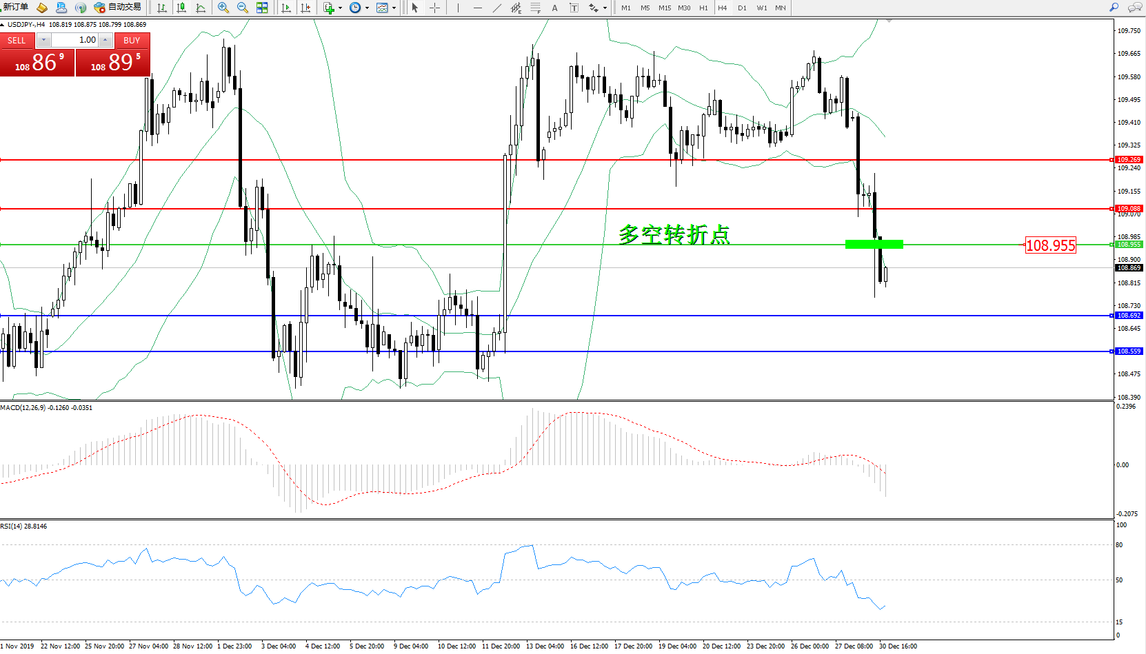 交易策略:108.955下方看跌,目标109.088、109.269