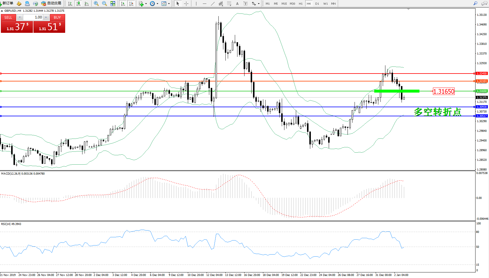 交易策略:1.31650下方看跌,目标1.30930、1.30517