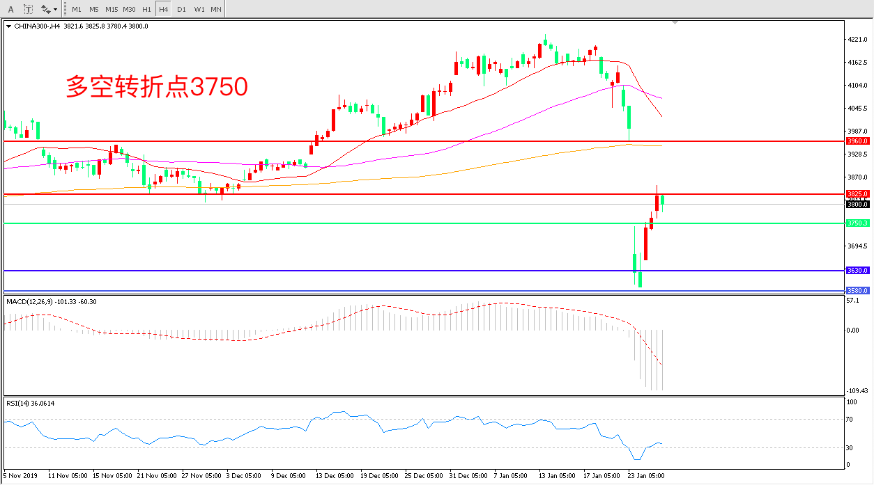 沪深300  CHINA 300   4小时图