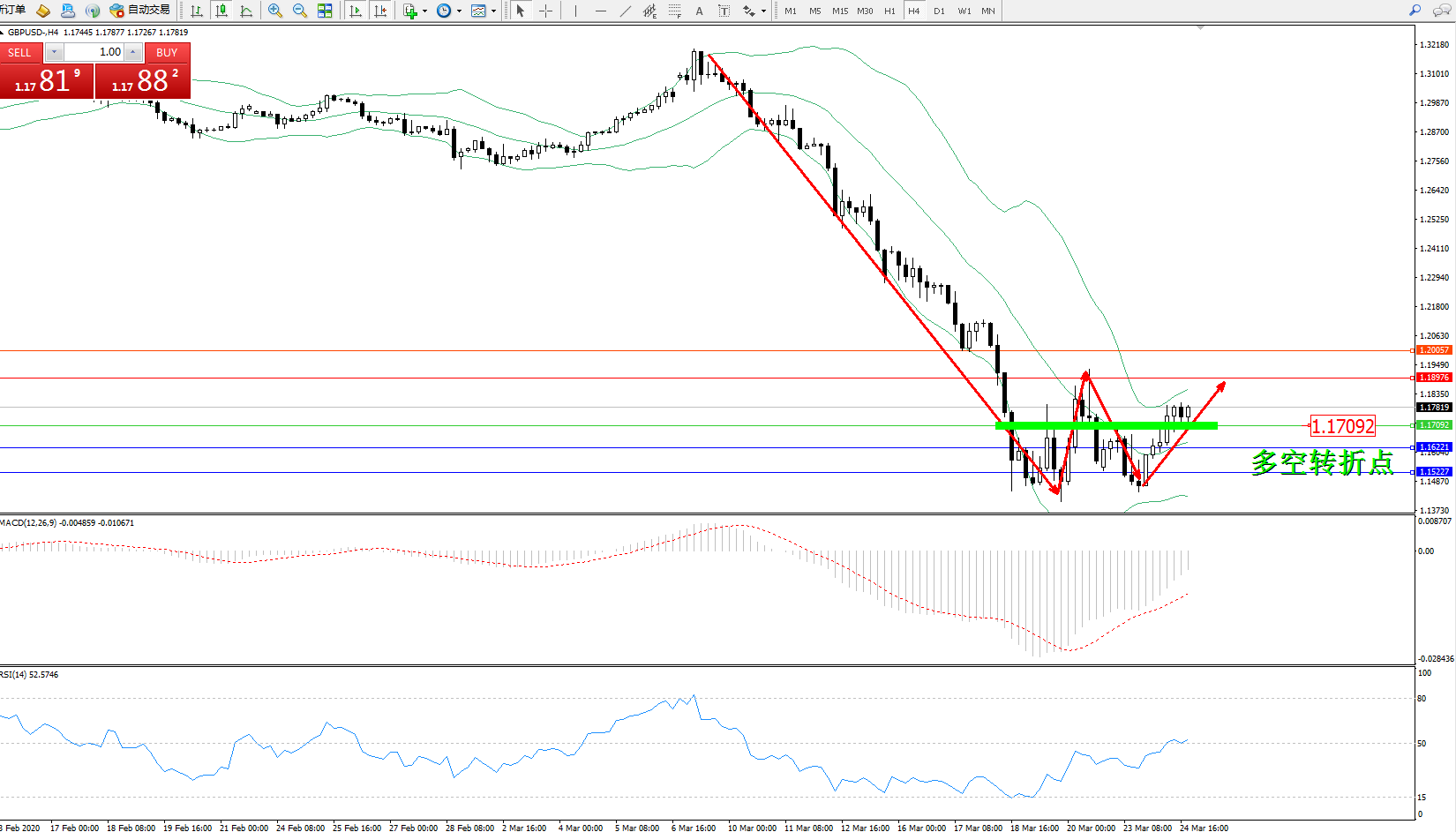 交易策略:1.17092上方看涨,目标1.18976、1.20057