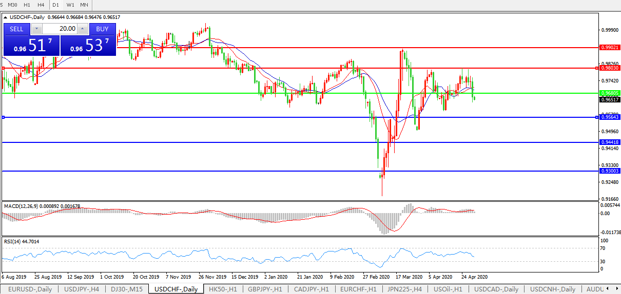 交易策略:0.9680下方看跌,目标0.9565、0.9440