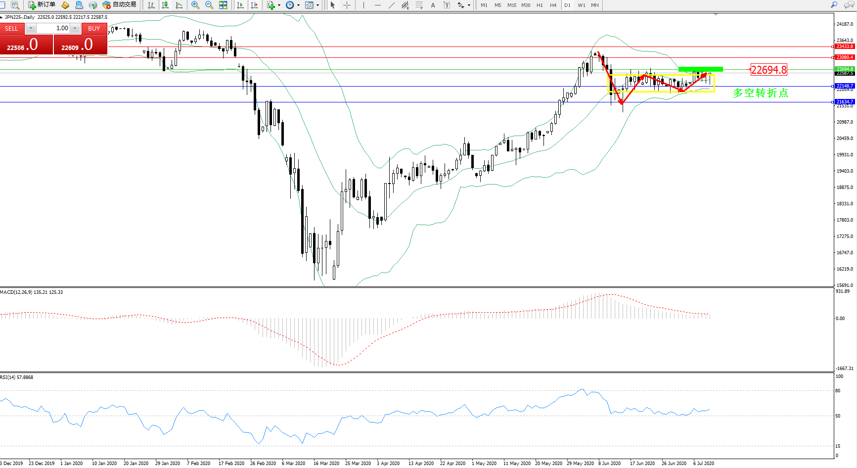 技术点评:多头动力延续布林带指标通道内持续窄幅波动愈发收窄,布林带指标呈收口走势持续中,长时间呈矩形整理走势,触及上轨附近节点后有持续继续试探拉升态势,MACD指标处于处于0轴线上方持续窄幅整理平移中,RSI指标处于50均衡线上側弱势徘徊整理中;