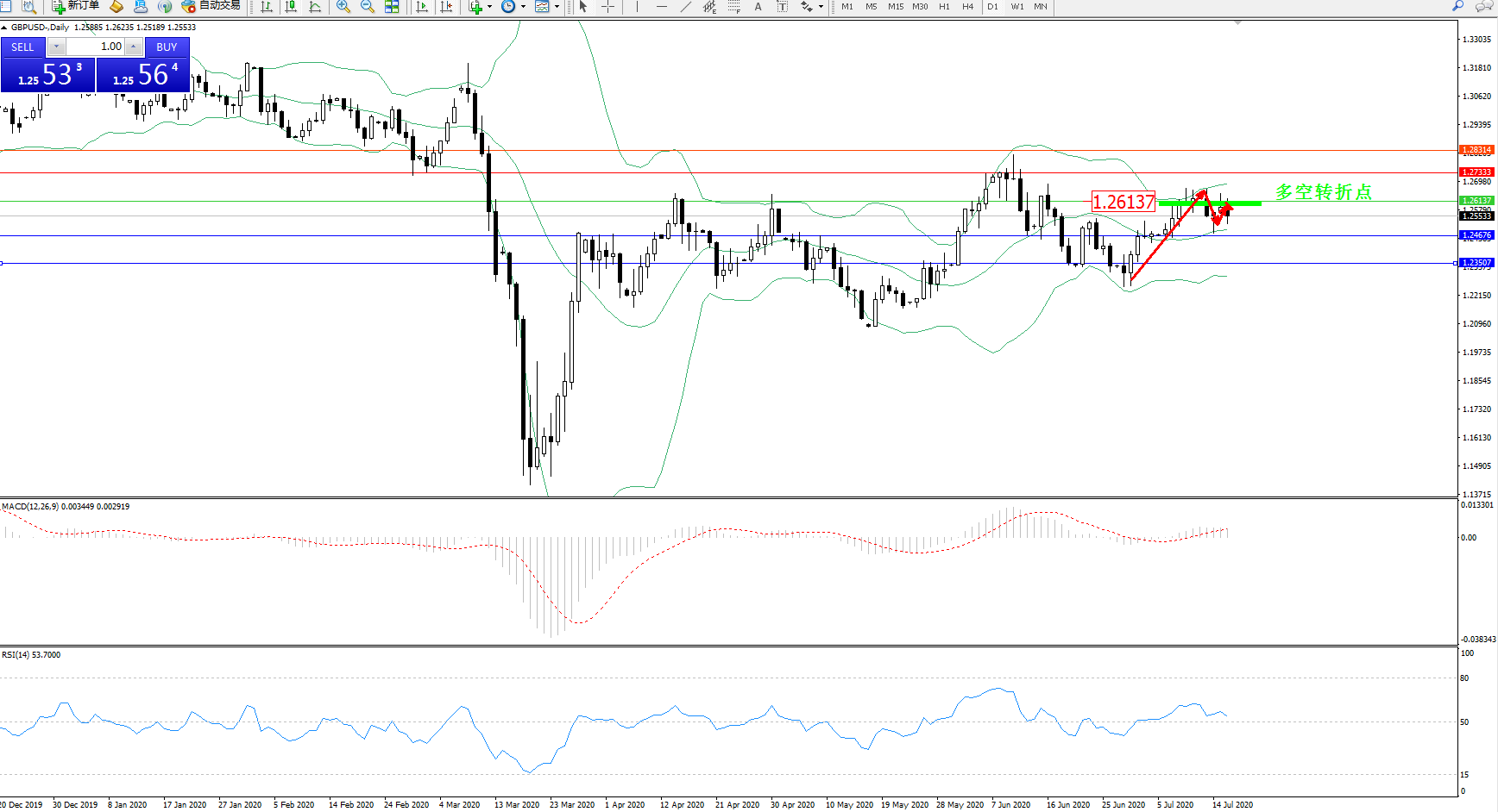 备选策略:1.26137上方看涨,目标1.27333、1.28314