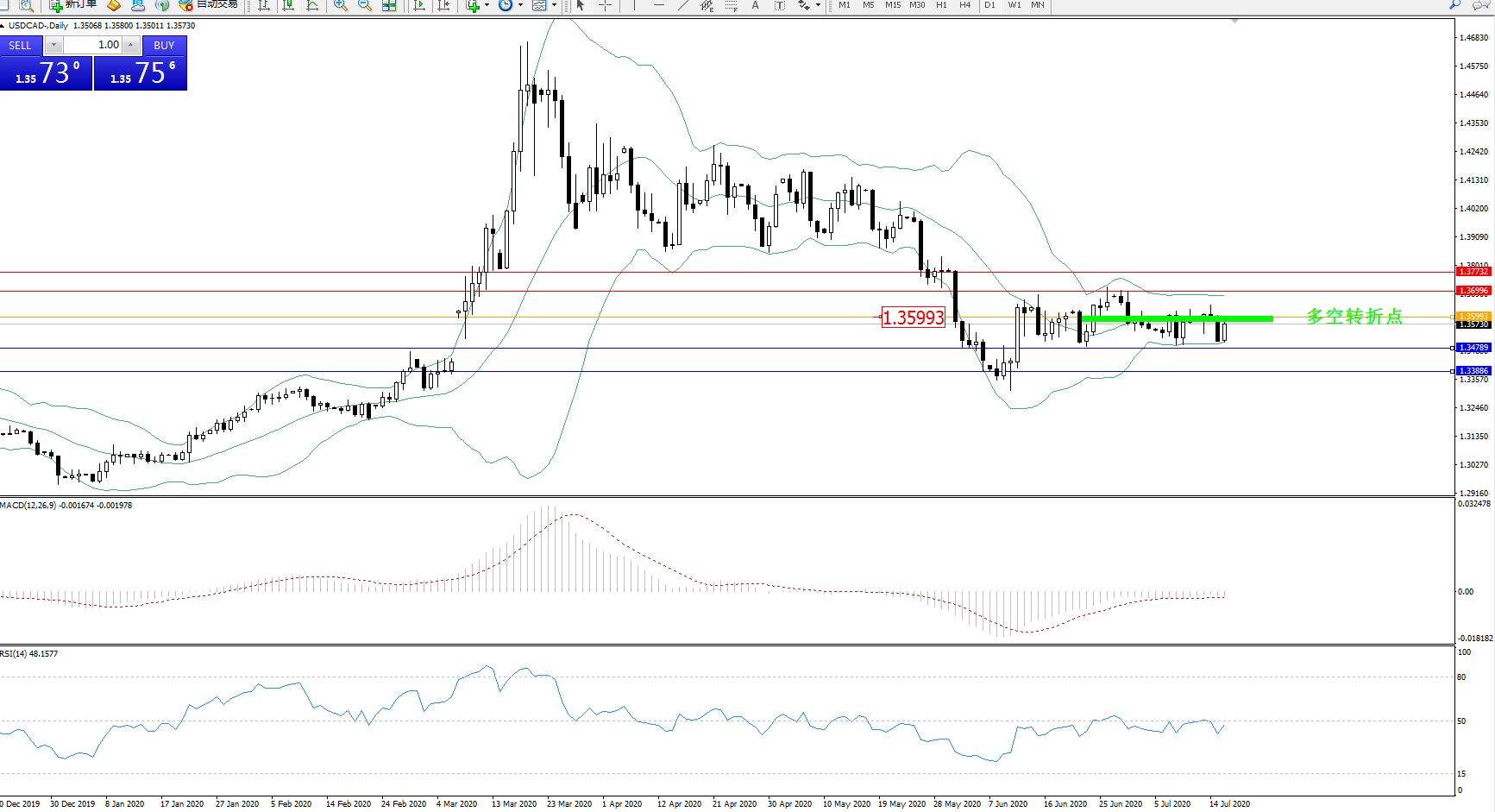 美元兑加油处于1.35754附近震荡,加拿大央行提出的前瞻性指导意见表明,2023年之前该央行不会加息;加拿大央行确实部署新的政策工具:前瞻性指引,承诺将隔夜利率保持在当前水平,直到经济恢复满负荷且通胀持续实现2%目标,据货币政策报告预期,上述目标要到2023年或更晚些时候才能实现,通过降低今后的短期利率预期,该前瞻性指导旨在将长期借贷成本保持在较低水平,这一目标因持续资产购买获得支持;正如加拿大央行行长马克莱姆所明确提出得那样,希望加拿大人知道借款成本将长期保持低位;本行仍然认为,加拿大央行资产购买计划至少将持续至2021年一季度,并可能持续到明年;新冠病毒大流行对加拿大经济将造成永久伤害将使经济长期生产能力降低4%,因此即使经济已经恢复到“满负荷生产”,增长仍将明显低于新冠疫情前的水平。