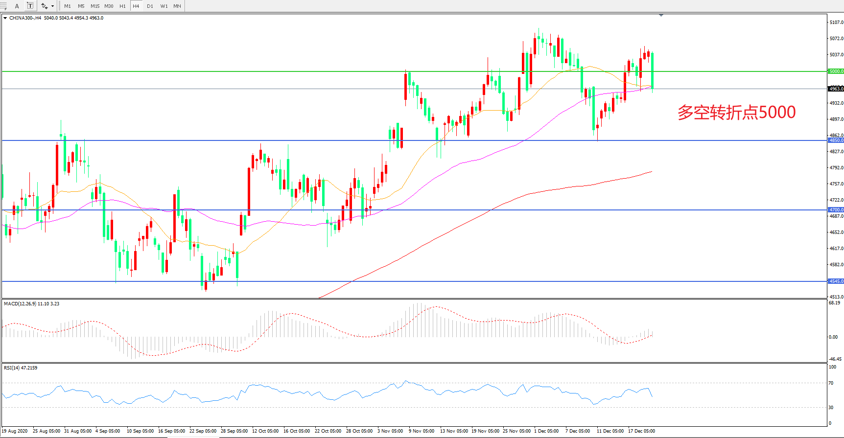 备选策略:在5000.00之下看跌,目标4850.00 4700.00