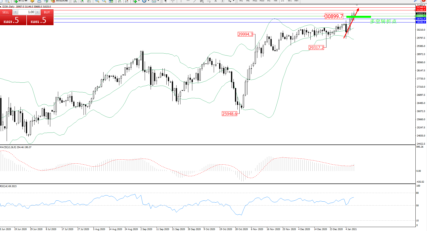 道琼斯指数1月8日(周五)收盘上涨56.80点,涨幅0.18%,报31097.97点。美国股市周五再创新高,三大股指齐收涨,美国12月非农就业报告不佳,提高了人们对出台进一步刺激措施以支撑遭受疫情及相关封锁措施打击的经济的预期,市场在等待拜登政府经济刺激措施的最终细节。美国民众现在需要更多的紧急援助,包括发放2000美元的刺激支票,即使进行赤字融资,现在采取行动将帮助经济。新冠疫苗的利好数据,以及民主党领导的美国国会将出台更大规模的财政方案和基础设施支出的预期,随着前所未有的货币和财政刺激带来的繁荣导致市场出现“泡沫”,近期股市将出现回调。疫情限制放松,消费者支出的恢复,以及企业库存的重新补充,应该会在2021年提振经济活动。