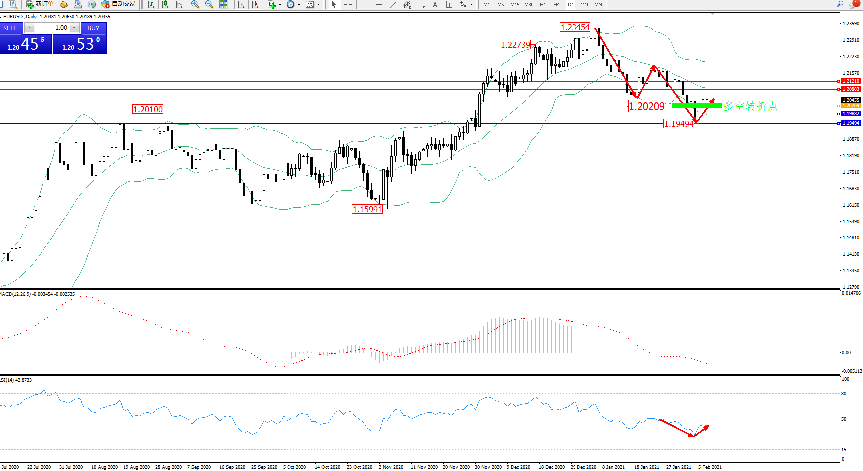 交易策略:1.20209上方看涨,目标1.20883、1.21210