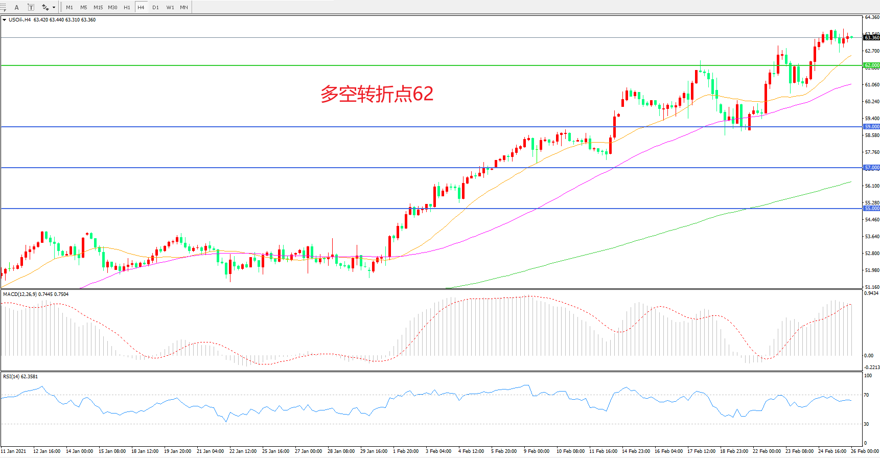 交易策略:在62.00之上看涨,目标65.00    68.00