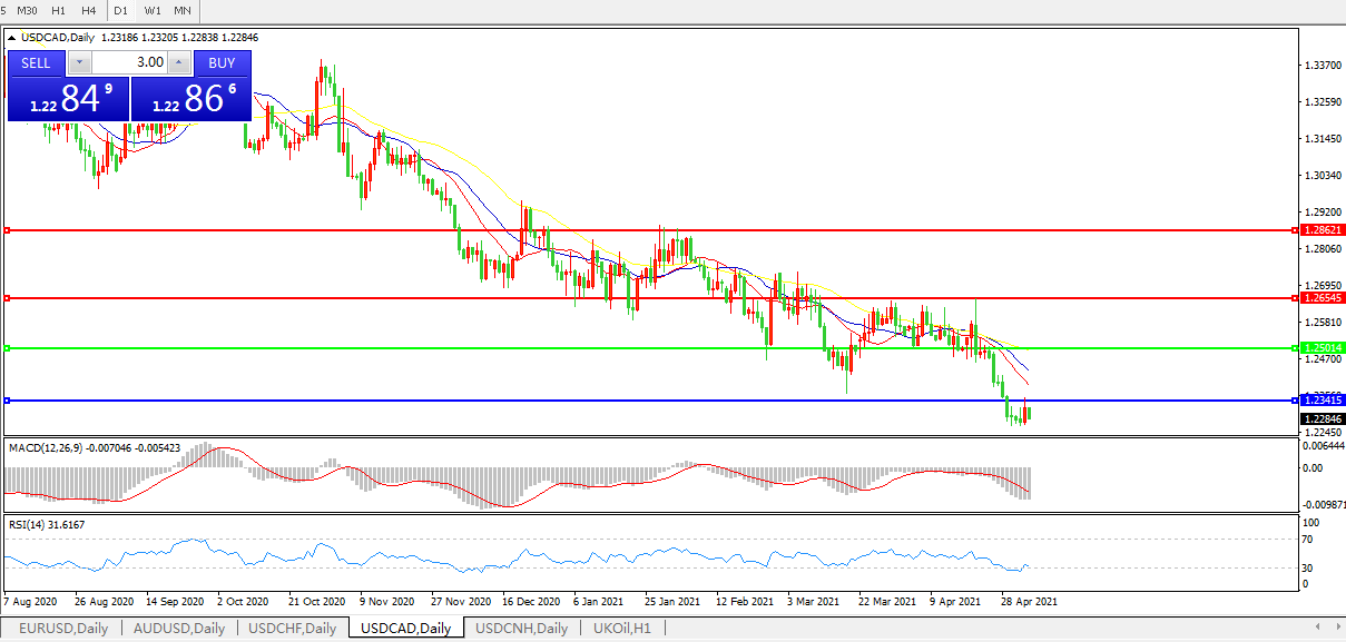 技术面简析:日线图均线有序空头排列,汇价持续弱势下行,MACD运行于0轴下方但量能未能继续放量,RSI小幅走升,预计短期汇价大概率将在反弹修正后进一步下行。