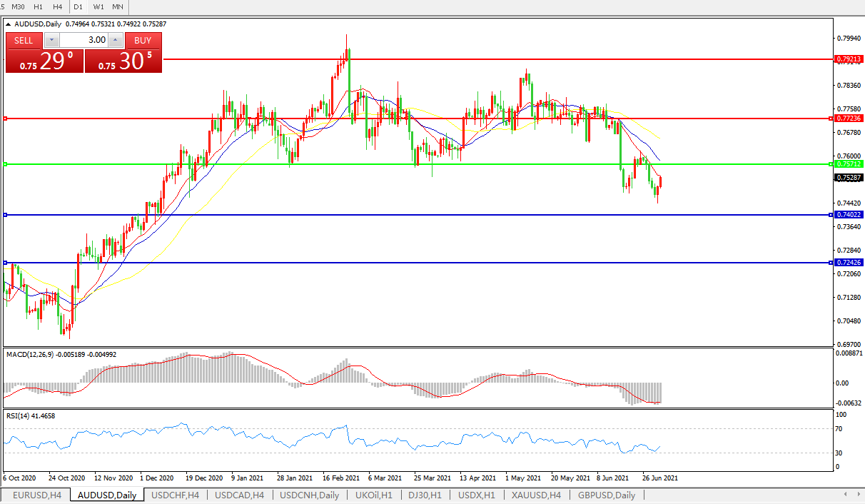 交易策略:0.7570下方看跌,目标0.74000.7240
