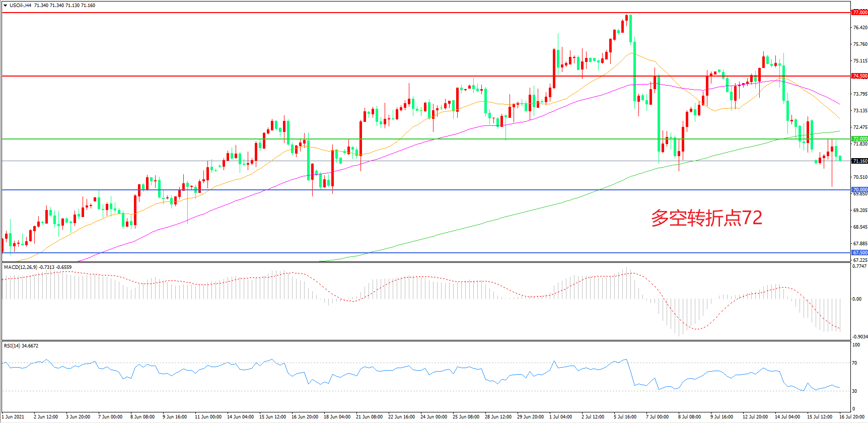 备选策略:在72.00之上看涨,目标74.50       77.00