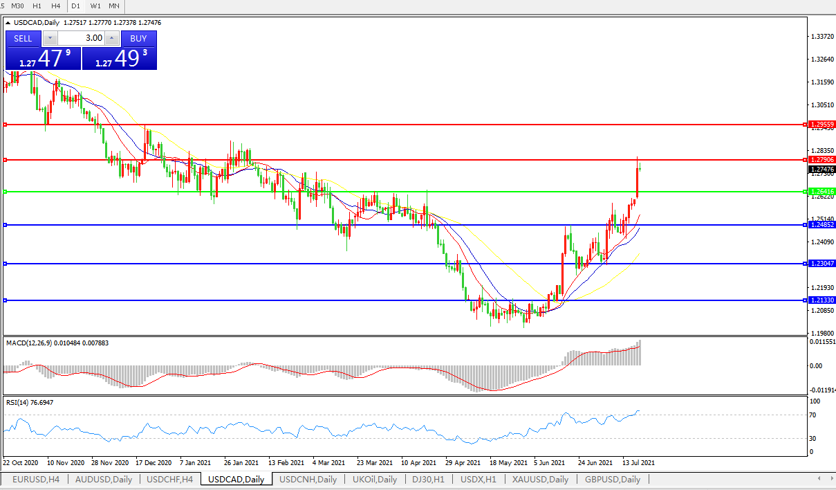美元兑加元上涨1.09%至1.2750,触及2月12日以来的最高点;丰业银行策略师Shaun Osborne和Juan Manuel Herrera周一在报告中写道,加元大幅反弹的可能性很小,事实上,价格走势和更广泛的市场情绪波动表明,加元现在至少在短期内更有可能保持相对疲软。