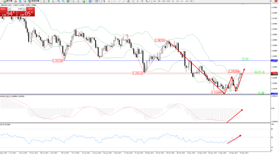 空头动力延续布林带指标通道中下轨区间持续震荡下行,低位抵达1.31609位置得到支撑,开始维持宽幅震荡上移,触及布林带指标上轨附近节点后有继续攀升态势,布林带指标呈收口走势后开始张口上移,上方压制关注1.35720附近,低位支撑关注1.31420附近节点,关注1.34112附近转折点,MACD指标处于空头区域维持震荡上扬至0轴线附近徘徊,RSI指标维持震荡上移至50均衡线上方多头区域向上拉升中,如图: