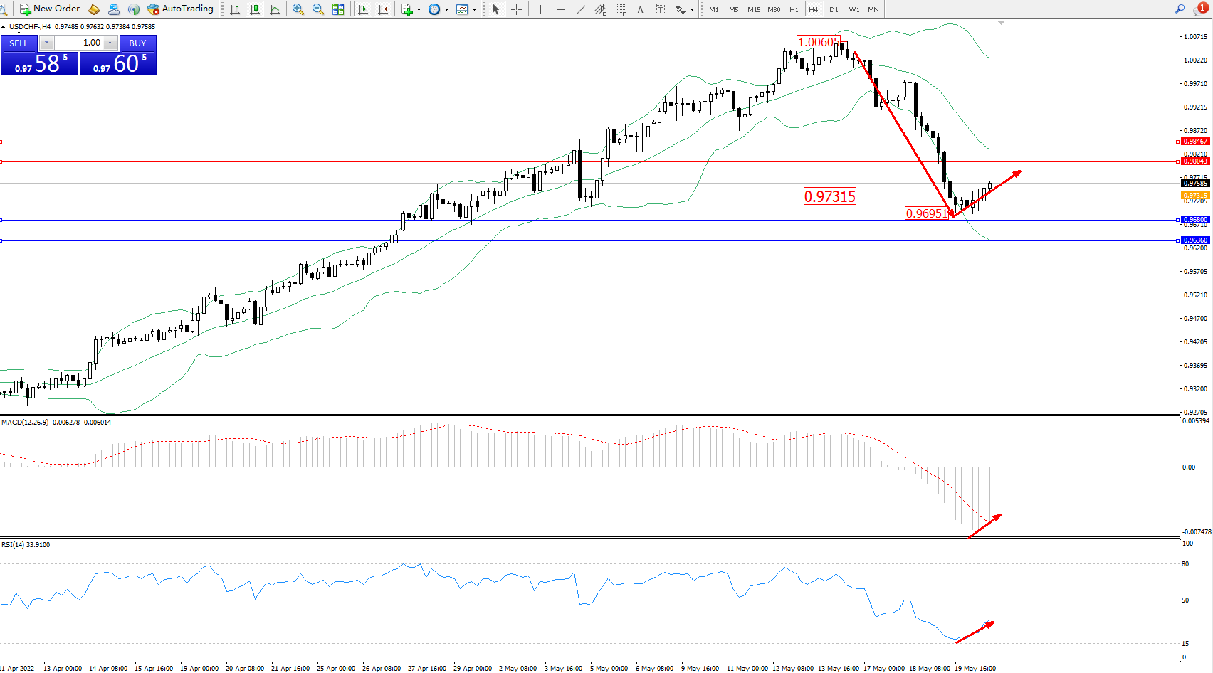 美元兑瑞郎维持0.97585附近震荡,美债及其美元双双走弱,美元指数当日跌幅达到了1%为当周最大跌幅,此前疲弱的美国楼市数据加剧了对经济放缓的担忧。在持续通胀和地缘政治风险加剧的推动下,对全球经济增长的担忧情绪也逐步涌出,这或许会在一定程度上资金涌入瑞郎。