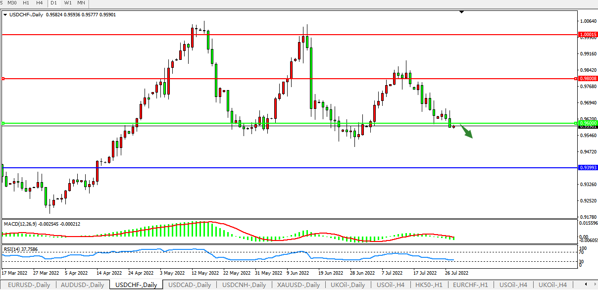 交易策略:0.9600下方看跌,目标0.9400、0.9200