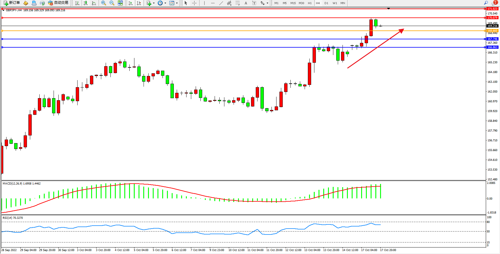 英镑兑日圆维持169.216附近震荡,英国经济学家警告称,随着能源价格和通胀打击企业和家庭,英国将面临长达9个月的衰退。英国经济已经在萎缩,并将继续下滑,直到明年年中。预计,今年的GDP将整体增长4.3%,2023年将收缩0.3%。