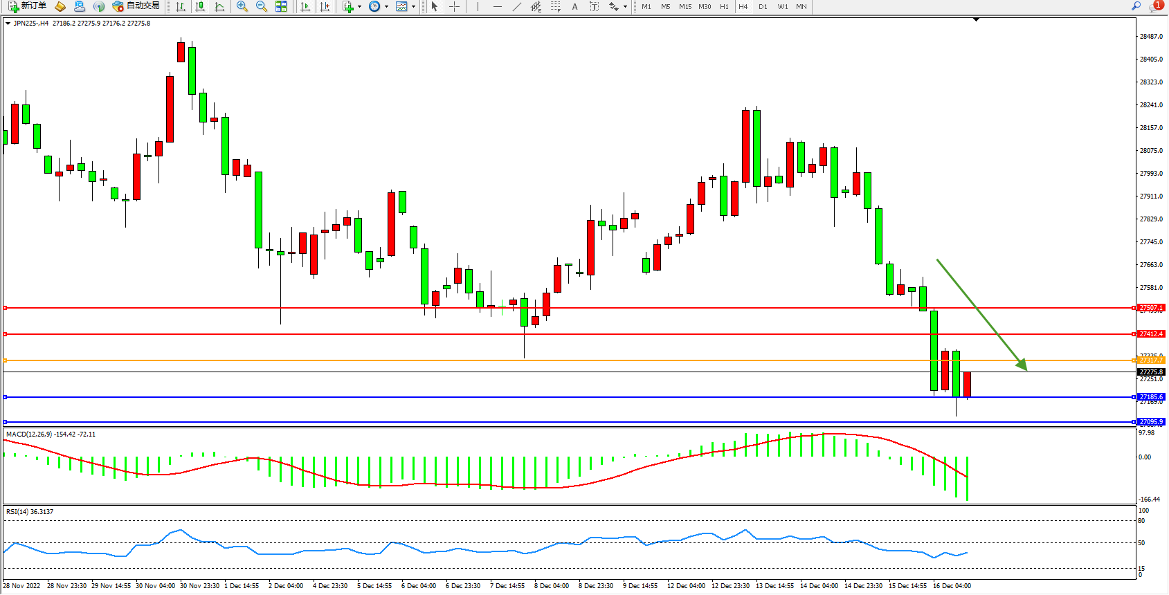 日经225指数12月16日(周五)收盘下跌535.20点,跌幅1.91%,报27516.50点。日本政府周五同意提高企业、烟草和灾难重建所得税约1万亿日元,以求到2027年将军费增加一倍,达到GDP的2%。除此之外,日本还将对小企业征收4%—4.5%的法人附加税,其中扣除500万日元,同时对个人收入暂时征收1%的附加税。
