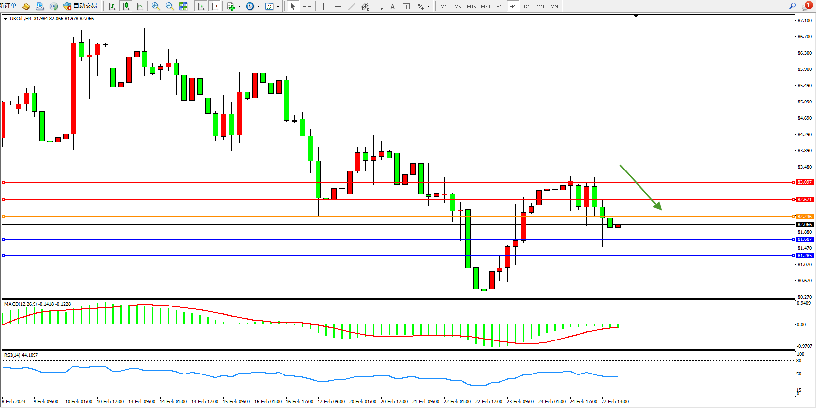 交易策略:82.246下方看跌,目标81.687、81.285