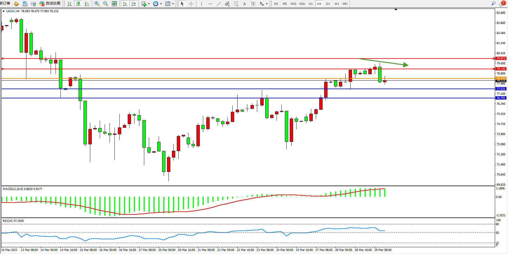 备选策略:78.370上方看涨,目标79.135 79.973