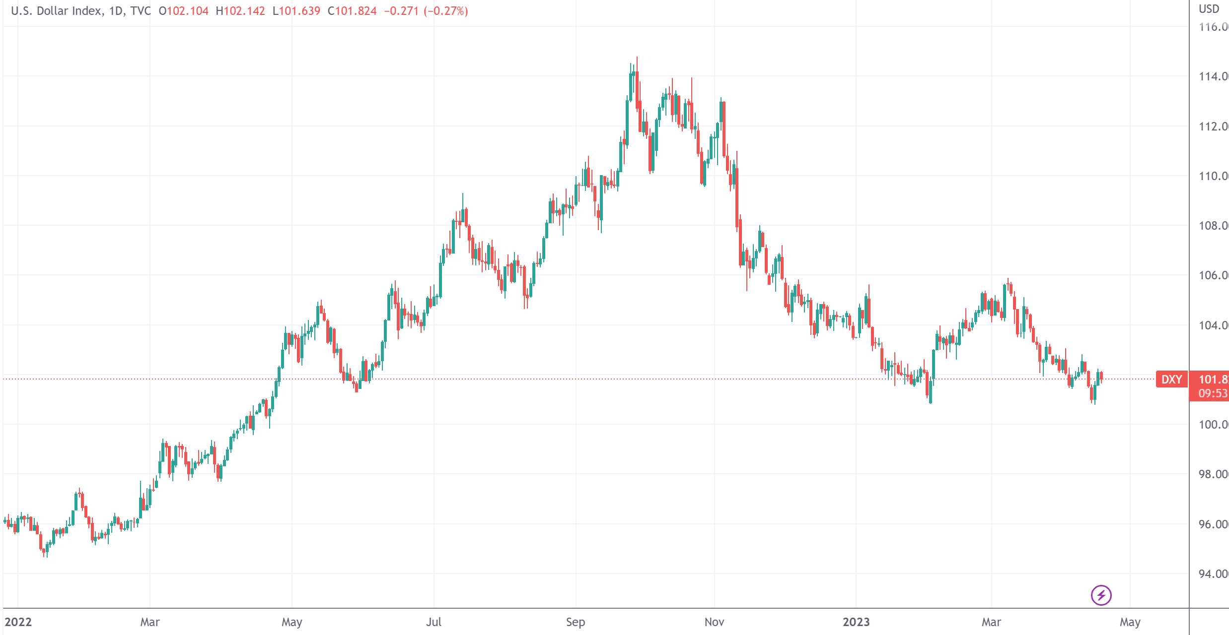 作为上个月美国银行业危机的后果之一,美元指数(101.6634, -0.0791, -0.08%)已经跌至近一年来的低点。面对此情此景,不少对冲基金和分析师继续判断美元还有进一步下跌的空间。