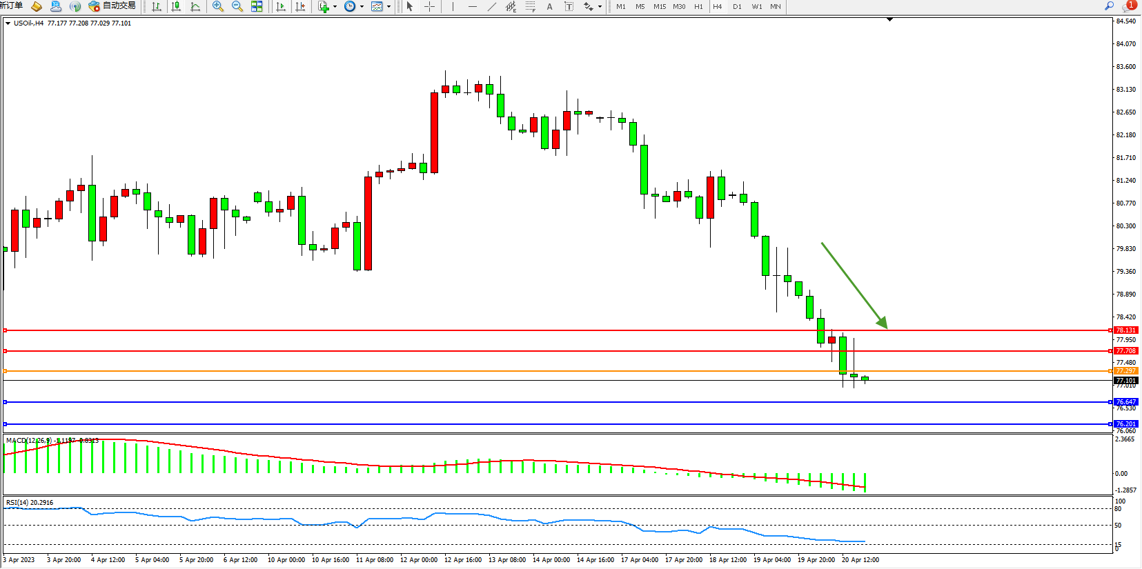 原油维持77.101附近震荡,由于国内市场对石油的需求减少,4月份俄罗斯炼油厂的季节性维护可能是原油出口量高的原因。