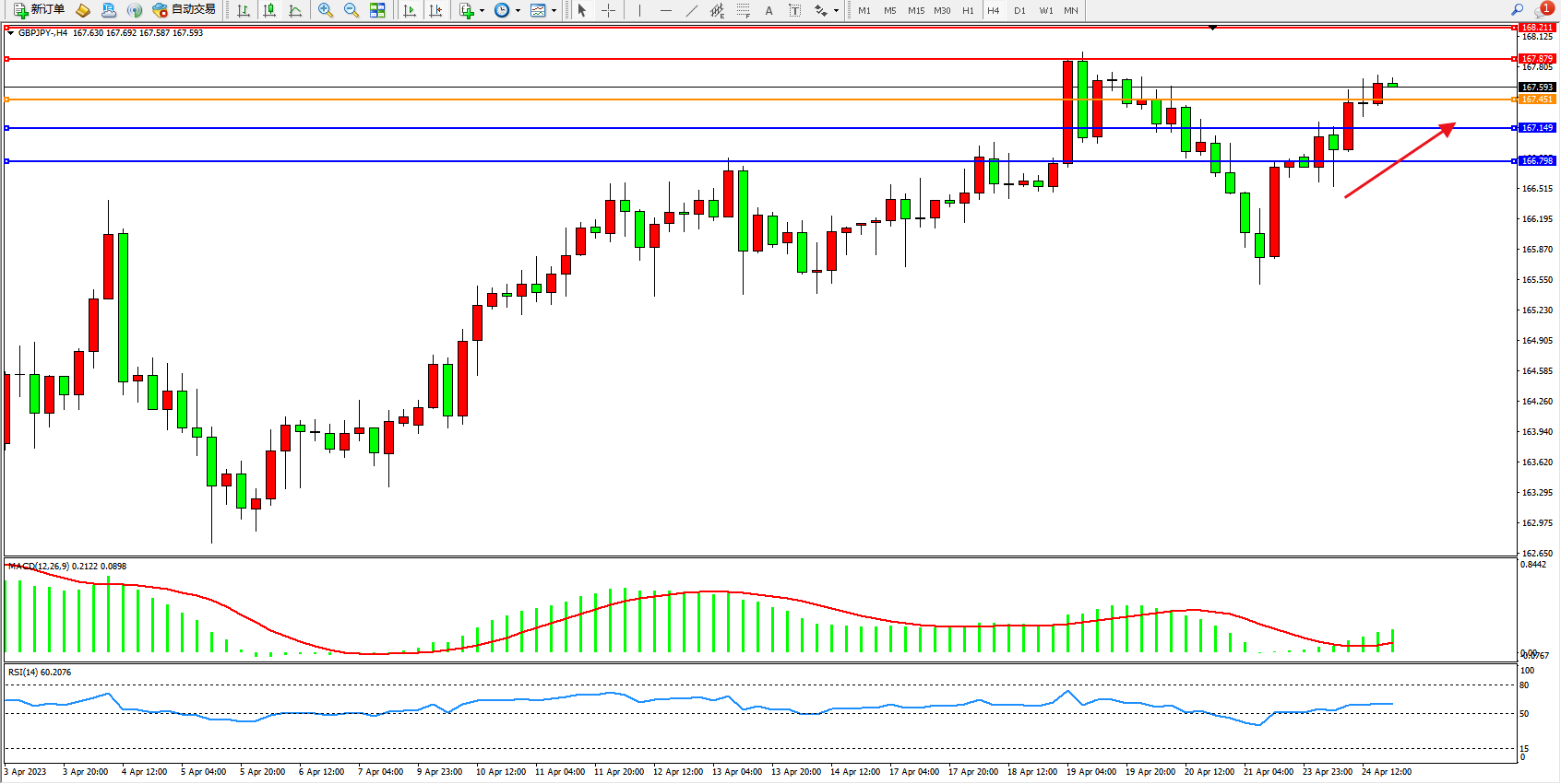 英镑兑日圆维持167.593附近震荡,英国央行的预测将于5月更新,但其最新预测表明,通胀将在本季度迅速下降,年底前接近4%,最终下降相当一段距离低于2%的目标。