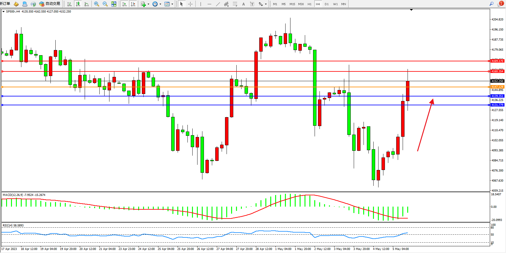 标普500指数5月5日(周五)收盘上涨73.43点,涨幅1.81%,报4134.65点;美国劳工统计局:美国4月失业率为3.4%,失业人数为570万,较上月变化不大。在专业和商业服务、保健、休闲和招待以及社会援助领域,就业人数继续呈上升趋势。