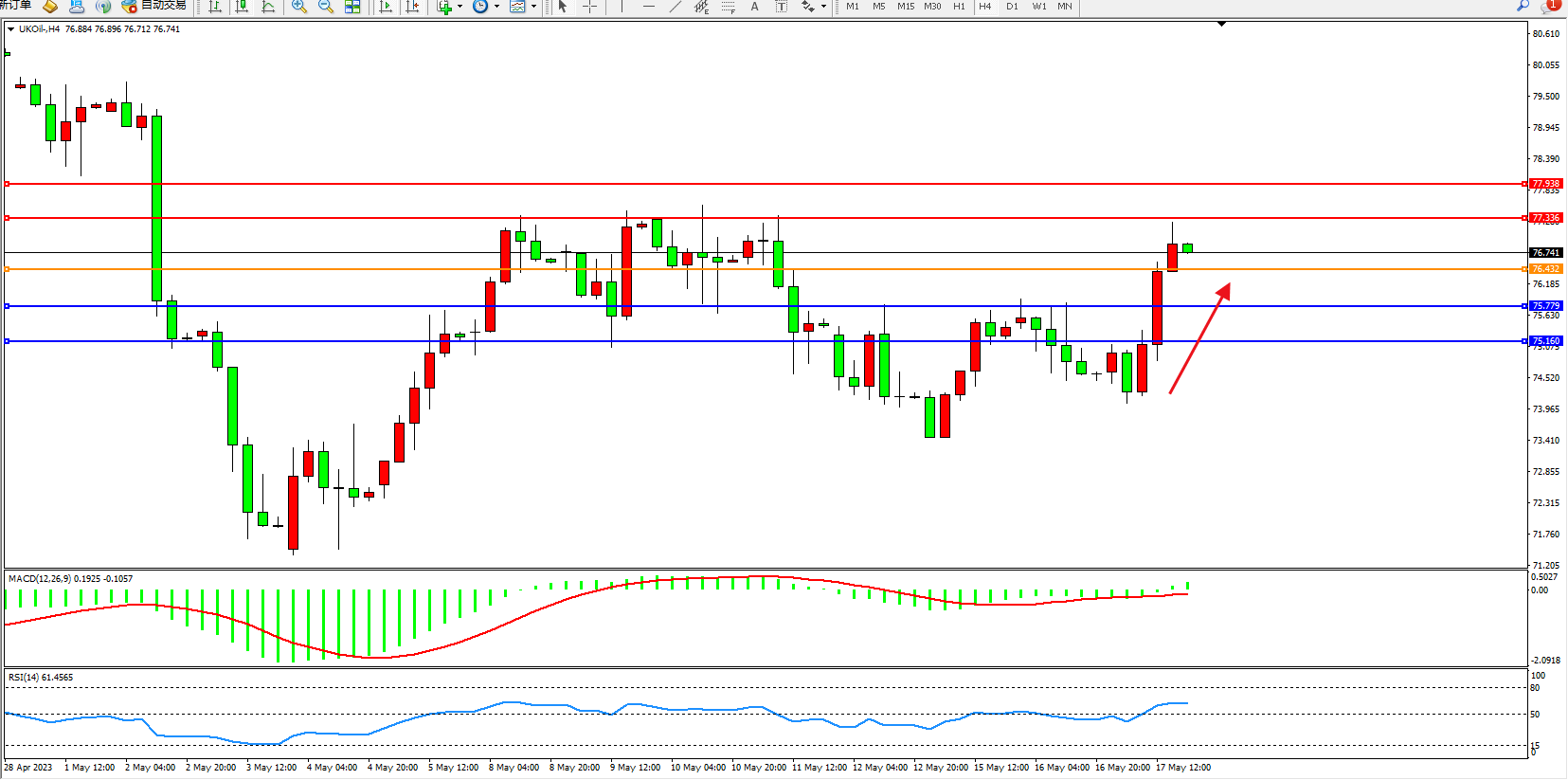 布油维持76.741附近震荡,EIA报告:除却战略储备的商业原油库存增加504.0万桶至4.68亿桶,增幅1.09%。05月12日当周美国除却战略储备的商业原油进口686.0万桶/日,较前一周增加130.7万桶/日。美国至5月12日当周EIA原油库存增幅录得2023年2月17日当周以来最大。