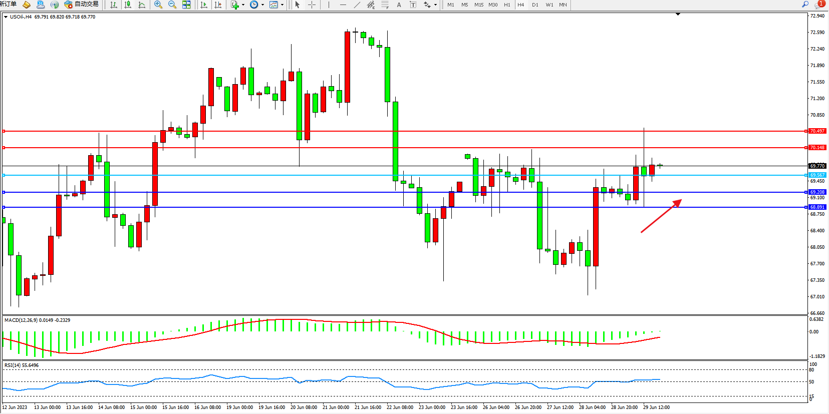 原油维持69.770附近震荡,随着美国进入驾车季节,燃料的直接需求将保持坚挺,但全球经济将在今年下半年放缓,从而减少石油需求。