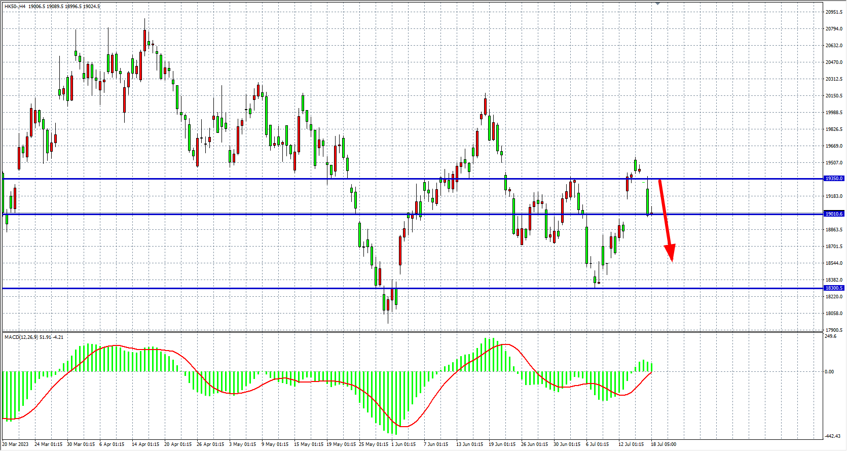 周二(7月18日)港股全天维持下跌行情,市场情绪疲弱,行业热门板块纷纷走低,恒指跌2.05%下挫400点再度跌破万九点。展望后市,恒指进一步下挫,市场流动性再度收缩,短线面临较大回调风险。