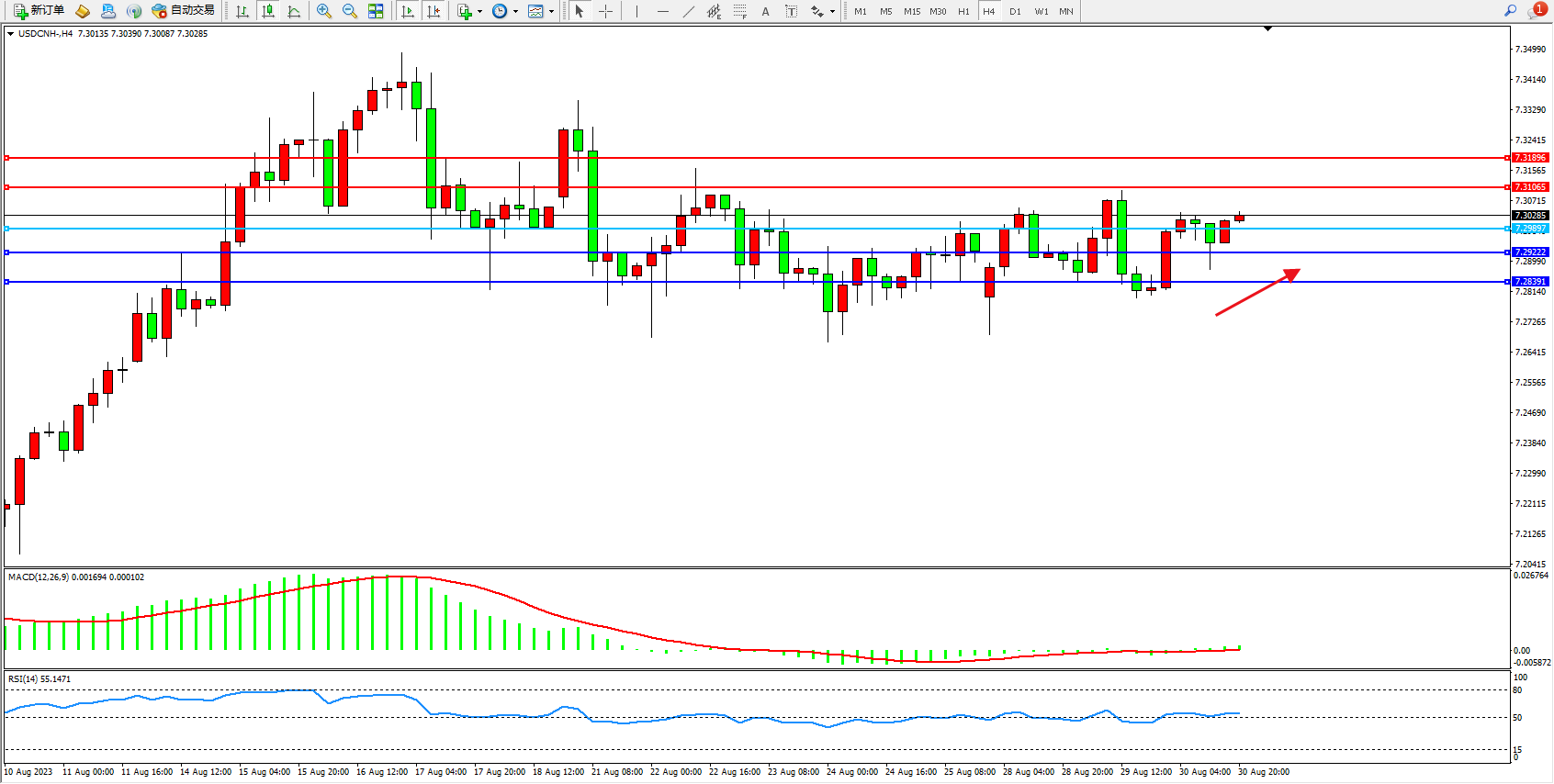 交易策略:7.29897上方看涨,目标7.31065 7.31896