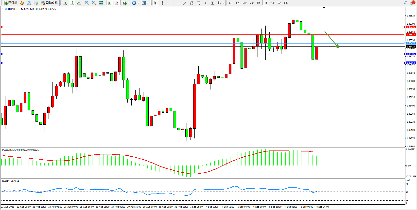 美元加元USDCAD——4小时K线图显示:
