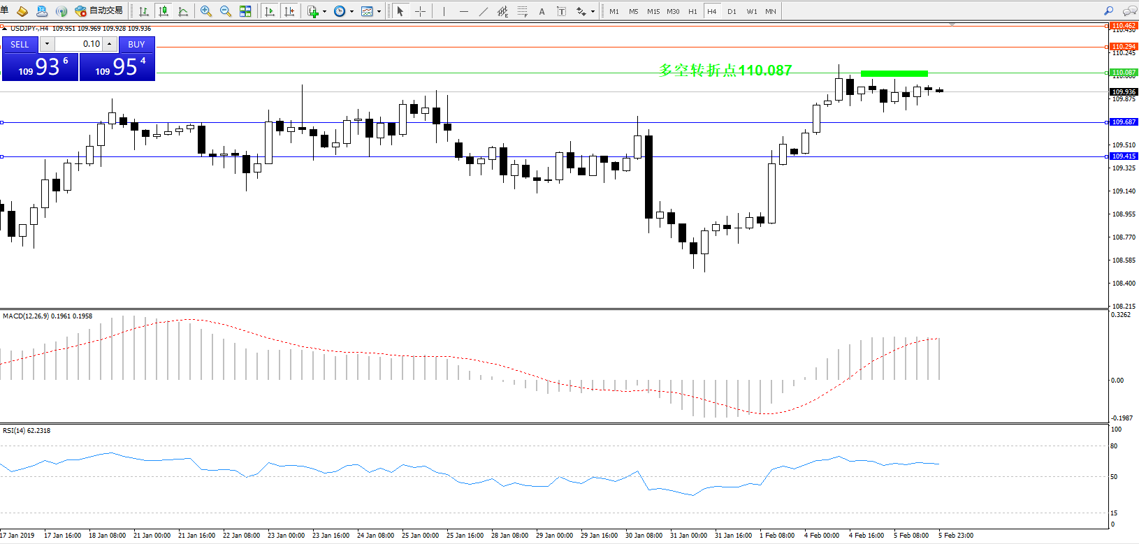 备选策略:110.087上方看涨,目标110.294、110.462